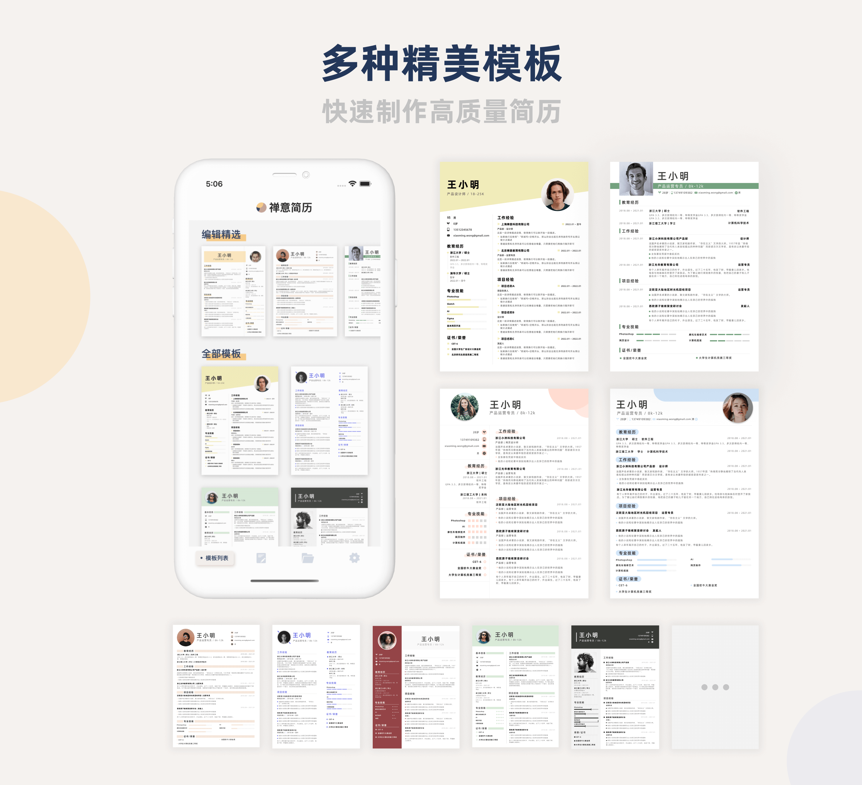 我在其中内置好了精心设计的多种简历模板,你可以挑选你心仪的模板,并基于它创建你的简历。